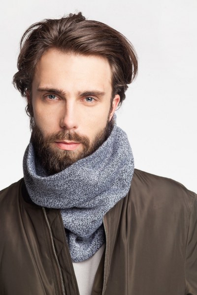 Komin męski w kolorze jasnoszarej muliny to idealny dodatek na chłodne jesienne i zimowe dni. Wykonany z gęstej, podwójnej dzianiny, zapewnia optymalne ciepło, jednocześnie nie przylegając ściśle do szyi. Jego luźny fason pozwala na łatwe zakładanie - wystarczy przeciągnąć przez głowę. Uniwersalny rozmiar i klasyczny styl sprawiają, że komin pasuje do każdej stylizacji, od kurtki po płaszcz. Ten model to must-have w każdej męskiej garderobie.