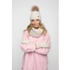 Beżowy damski komplet - czapka, komin, rękawiczki.