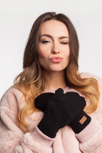 Czarne ciepłe jednopalczaste rękawiczki z podwójnej dzianiny.