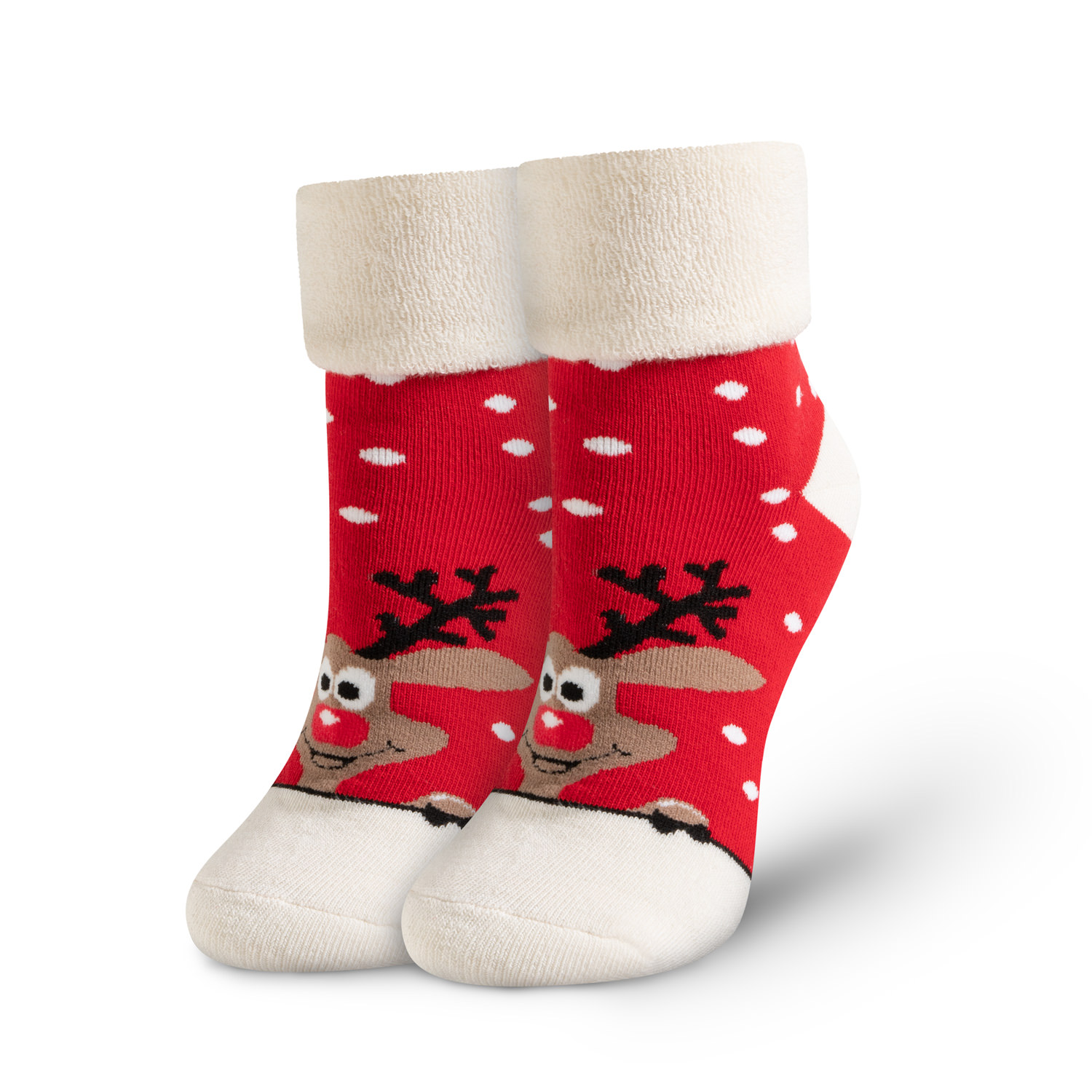 Czerwone skarpetki świąteczne z reniferem, rozmiar 33-36.